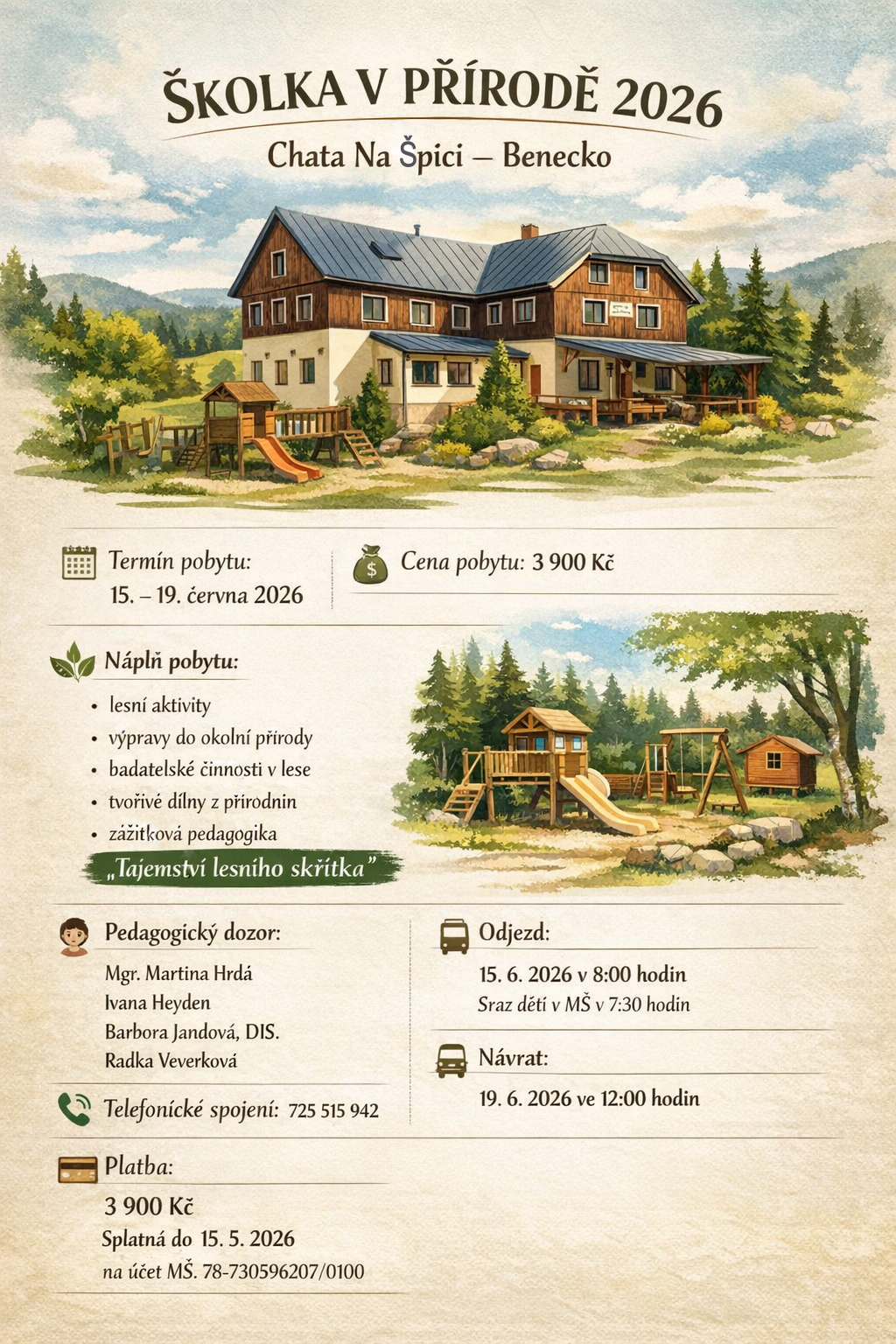 Podporujeme také rozvoj praktických dovedností, které děti využijí v běžném životě. Usilujeme o to, aby každé dítě mělo dostatek prostoru objevovat, tvořit a přirozeně růst.